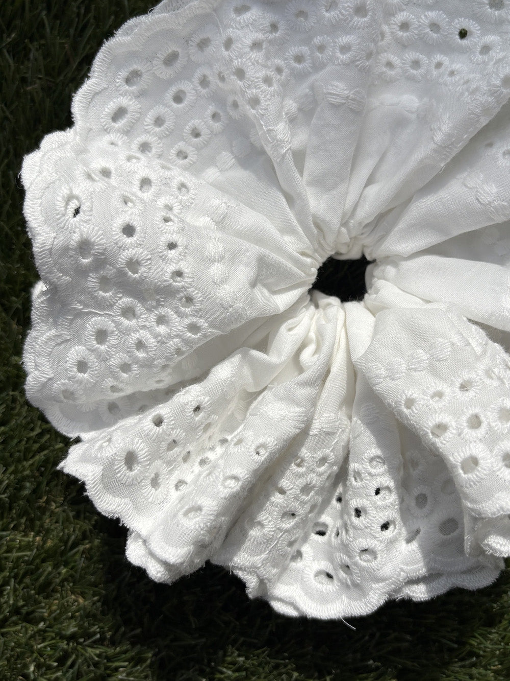 Embrace the clean girl aesthetic with our White Scrunchie Hair Tie, crafted from pure cotton for a soft, natural feel. Designed in a big, oversized style, it’s finished with delicate hollow lace trim that adds a touch of elegance and charm. Gentle on hair yet secure, this scrunchie is perfect for creating effortless ponytails, messy buns, or simply wearing on your wrist as a chic accessory. Minimalist, feminine, and timeless — your must-have piece for fresh, polished looks.