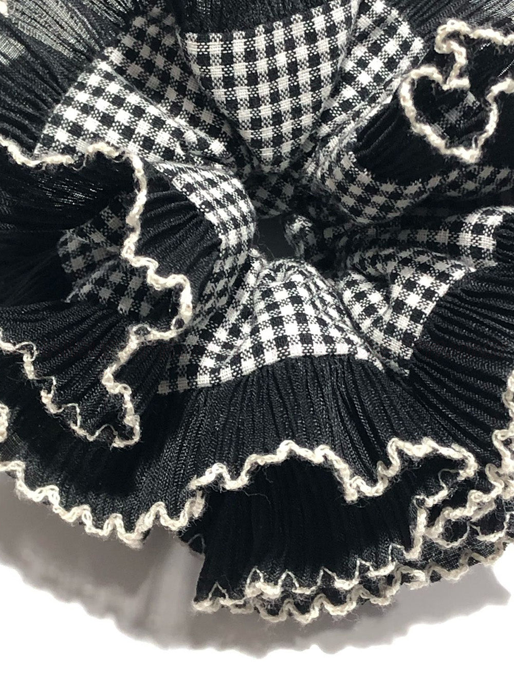Make a bold statement with our Oversized Checkered Black Scrunchie with Lace Trim. Designed for both style and comfort, this scrunchie features a classic black checkered pattern, adding a chic, vintage-inspired touch to any hairstyle. The soft, voluminous design provides a secure yet gentle hold, reducing hair breakage and creases. Delicate lace trim enhances its elegance, making it the perfect accessory for everyday wear or special occasions. Whether you style it in a high ponytail or a loose bun, this scrunchie adds a unique blend of edgy and feminine charm.