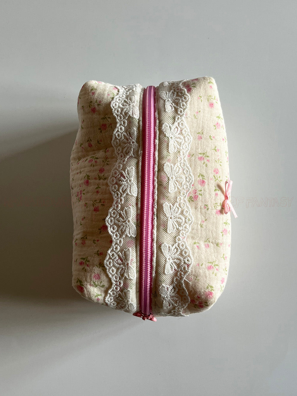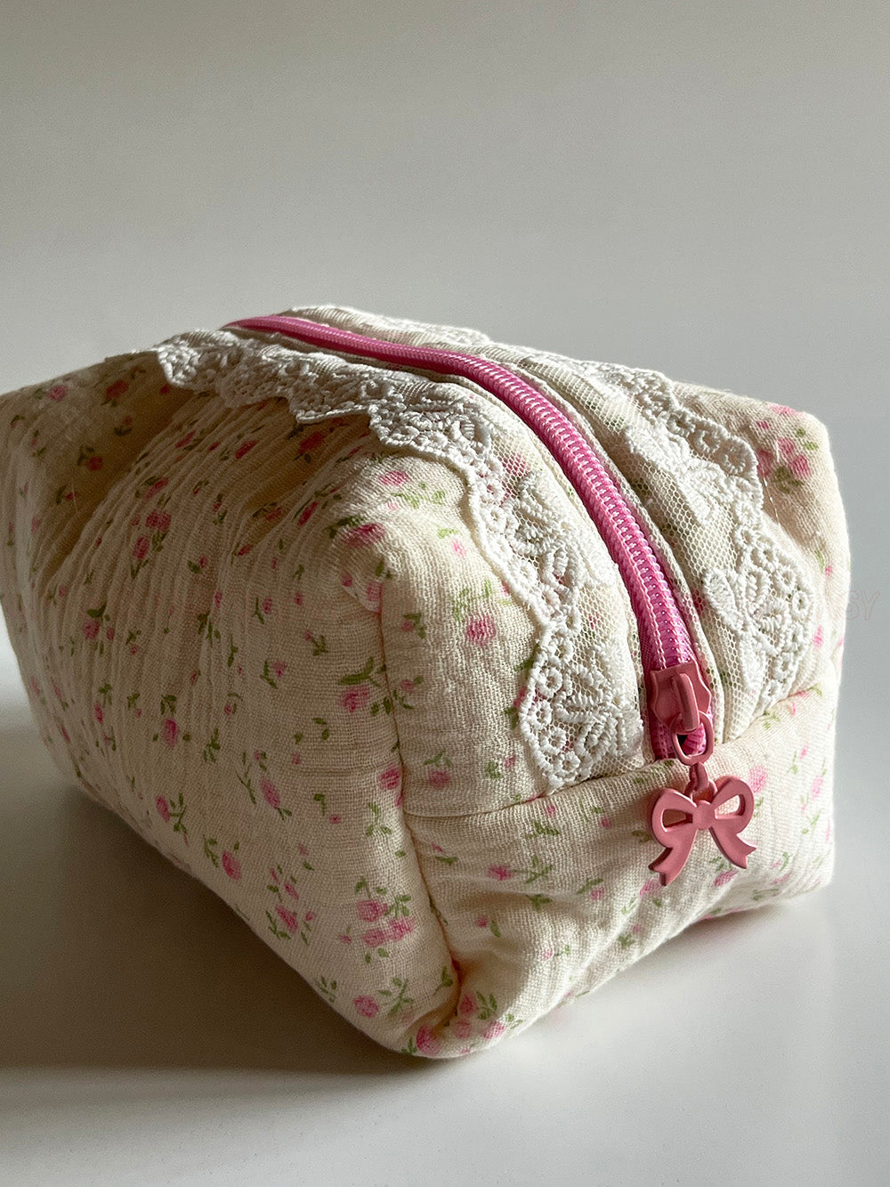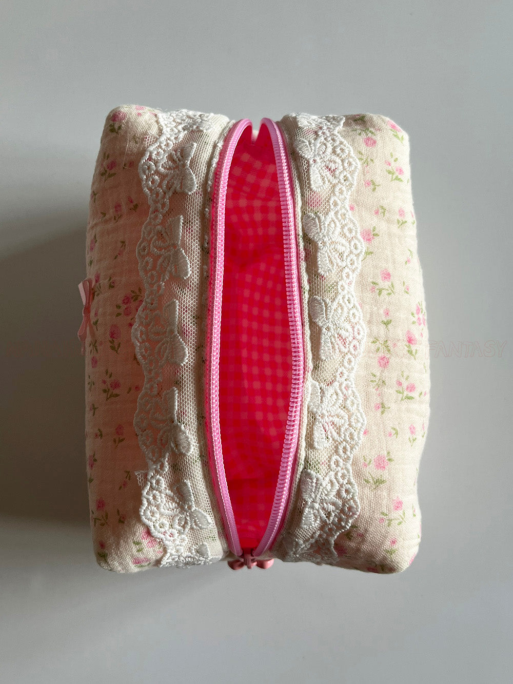 Lace-Trimmed Bowknot Little Rose Makeup Pouch