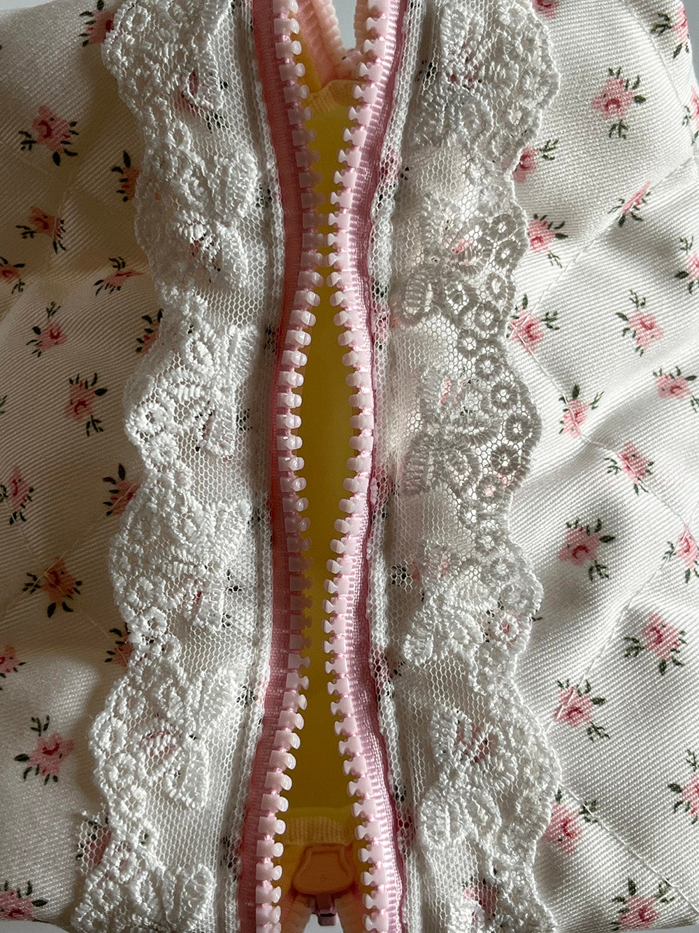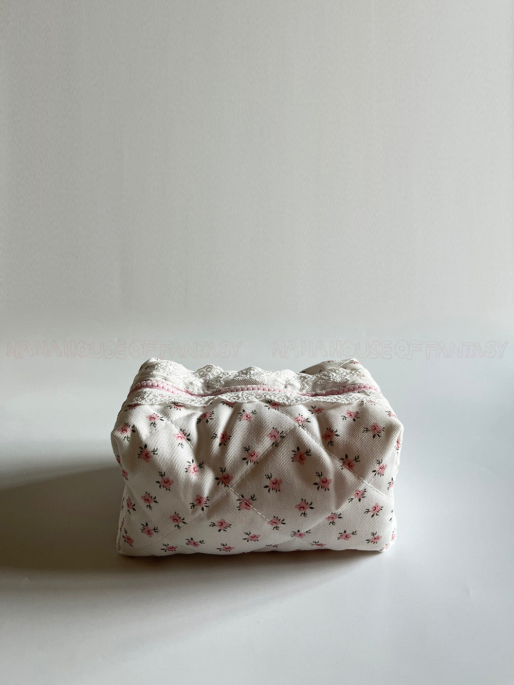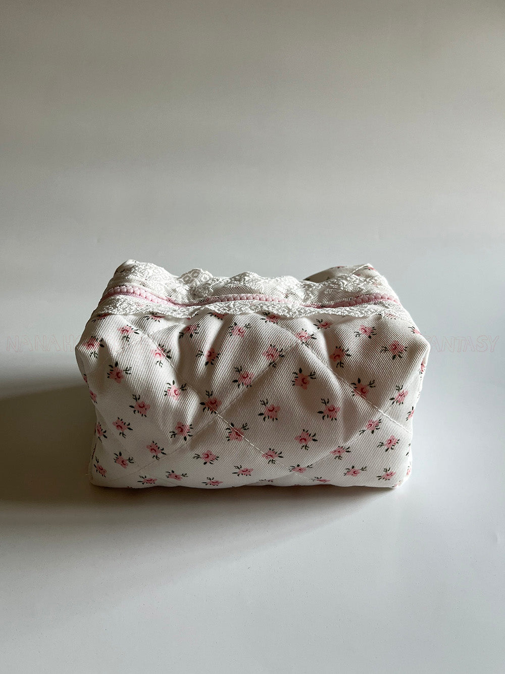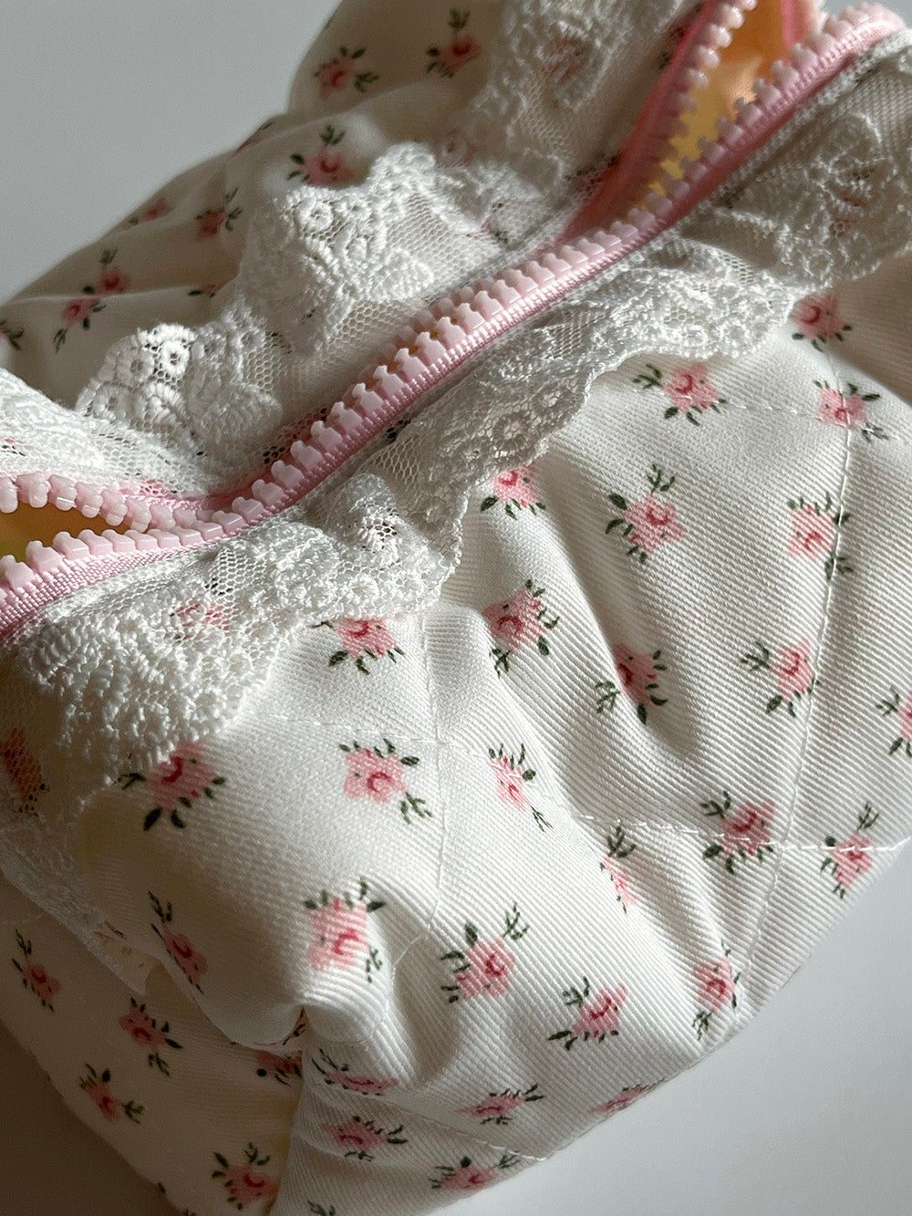 Lace-Trimmed Dreamy Garden Pink Floral Makeup Pouch
