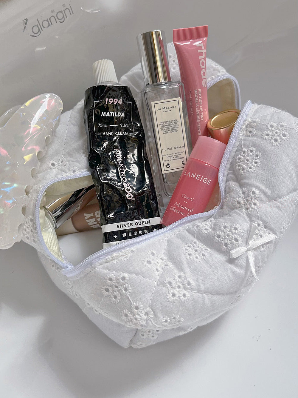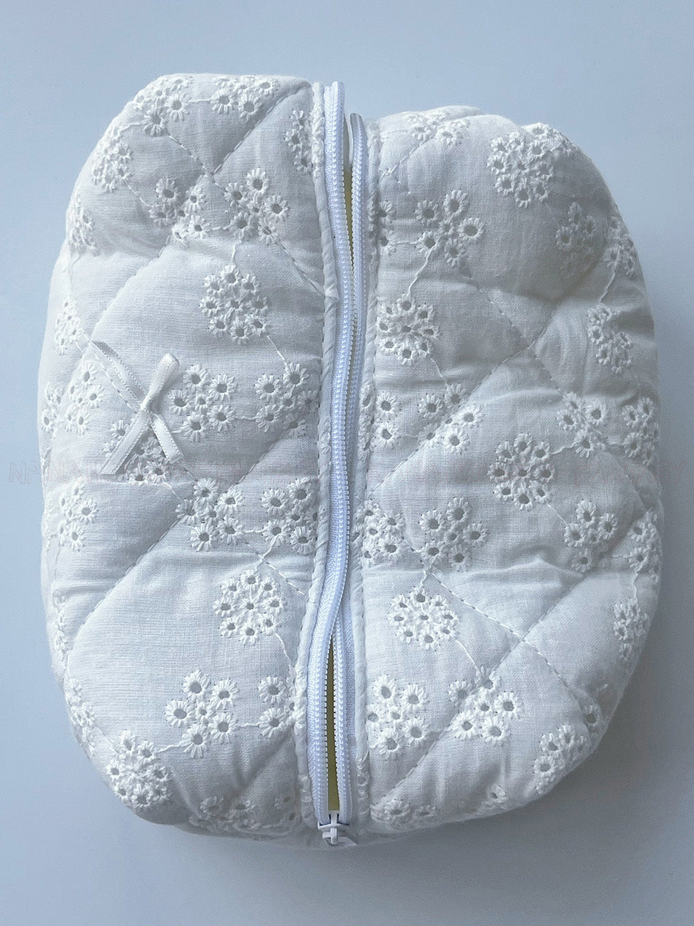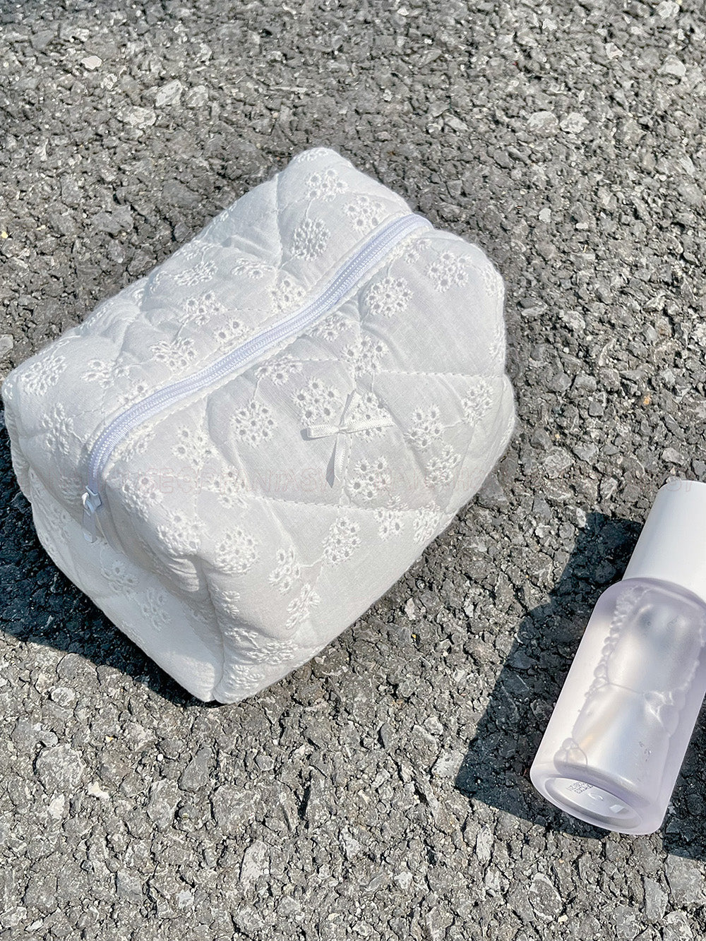 Stay organized in style with our White Embroidered Makeup Bag, designed for the clean girl who loves beauty and simplicity. Featuring a soft-touch finish and delicate embroidered detailing, this bag adds a touch of elegance to your daily routine. The spacious interior easily holds all your essentials — from skincare to cosmetics — making it perfect for both home and travel. Lightweight, chic, and highly functional, it's a hot sale favorite for those who value clean lines, soft textures, and effortless beauty.