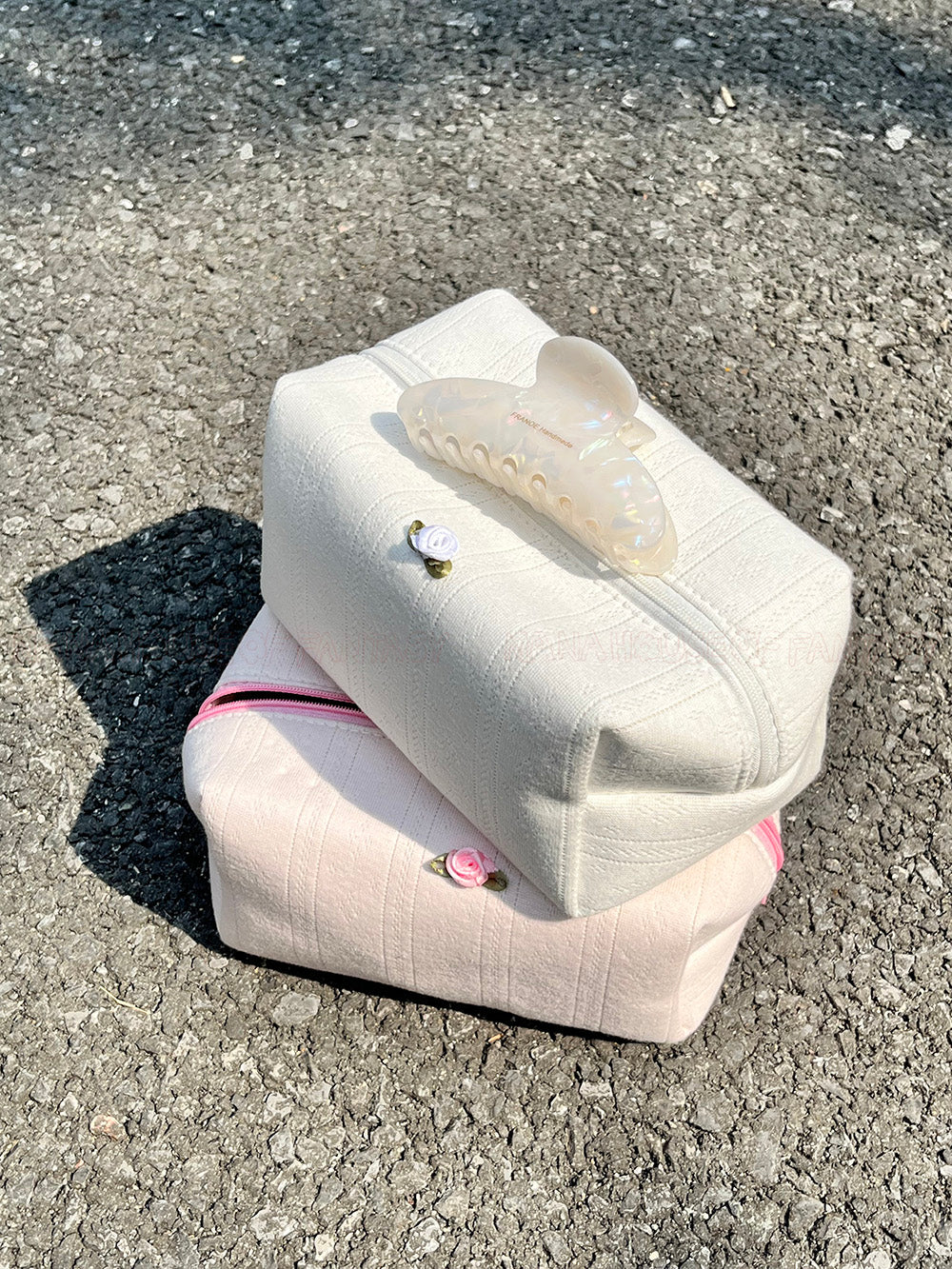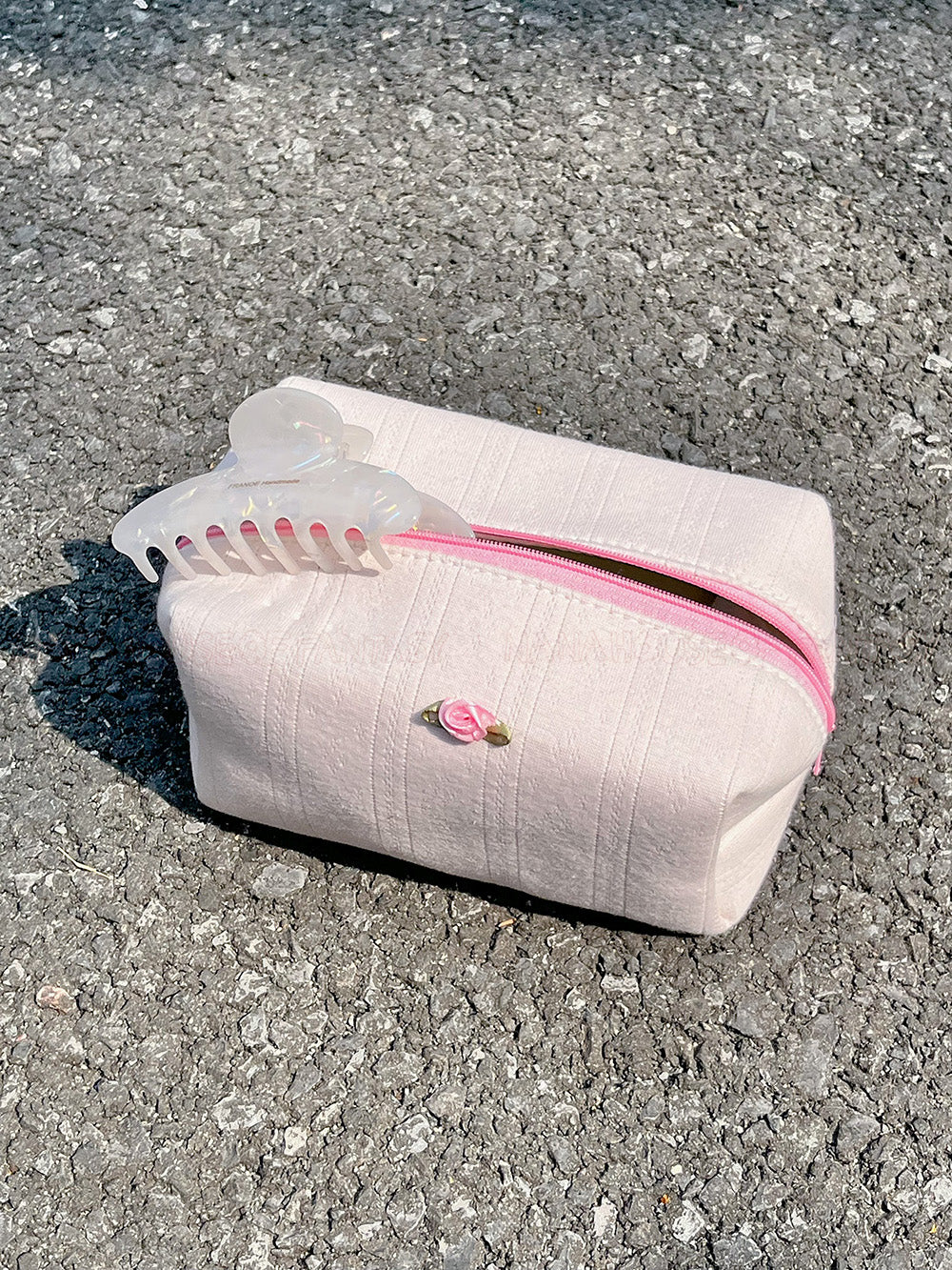 Pretty meets practical in our Pink Toiletry & Makeup Bag, featuring a sweet little rose detail on top for that extra touch of charm. Designed in a soft-touch finish and lightweight build, this bag offers ample space to hold all your beauty, skincare, or travel essentials without the bulk. The soft pink hue and delicate rose accent bring a cute, feminine vibe, making it perfect for clean girl aesthetics, travel days, or your everyday beauty routine. Functional, stylish, and oh-so-adorable — it’s your new go-to bag for beauty on the go!