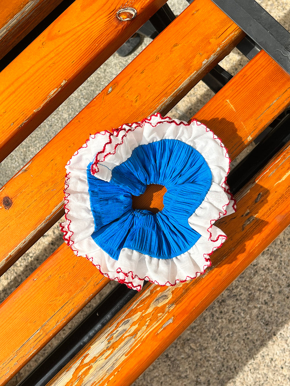 Channel effortless Parisian flair with our Oversized Scrunchie in Ultra Blue, delicately trimmed with white ruffles for a soft, romantic touch. The bold ultra blue hue brings a pop of color and confidence, while the airy ruffle detail adds vintage-inspired femininity. Made from premium, soft-touch fabric, this scrunchie offers a gentle yet secure hold, perfect for voluminous ponytails, chic buns, or simply adorning your wrist. A beautiful blend of French elegance and modern charm, it's the statement accessory every stylish girl needs.
